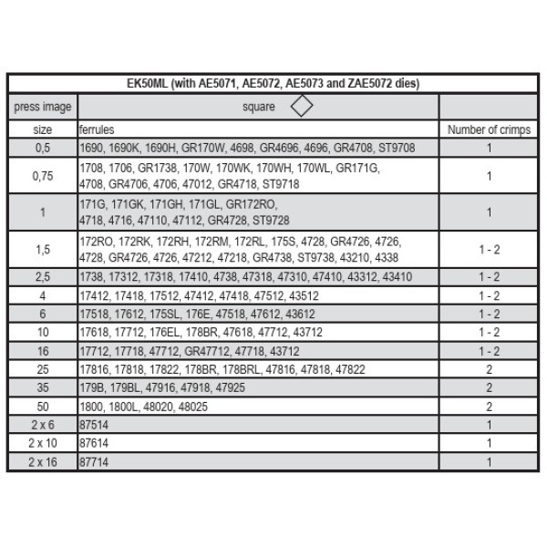 Klauke EK WF 50 ML érvéghüvely préselő szerszám 0,5 – 50 mm² + 4 présfej | EKWF50ML |